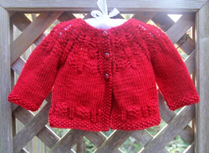 This top-down, seamless cardigan is quick to make for a great baby gift or a charity donation. The finished chest is 20" as written, but a change in gauge by varying needles and yarn thickness can alter the size by a few inches either way.
