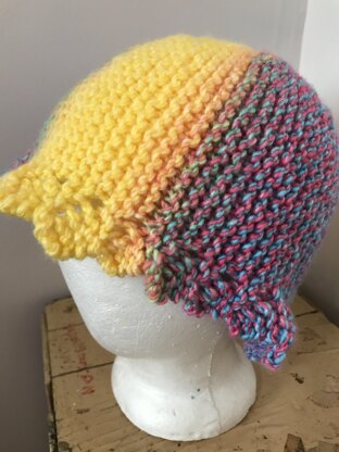 This hat is a companion pattern to my previously published Serendipity Scarf pattern, which was inspired by a student in one of my knitting classes. I was teaching a pattern for a round dishcloth which was knitted in a series of short-row wedges and with the bound-off edge then joined to the cast-on edge to make a circle. After I created the scarf pattern, I realized that I could use the same dishcloth pattern with an added modification to create a matching hat. Following a bit of calculating and experimenting, I am excited to present the Serendipity Hat!
