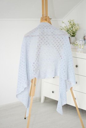 This shawl is worked from the center top down. Stitches are increased at each side on every row to give it characteristic crescent shape. The pattern includes a written description and charts.