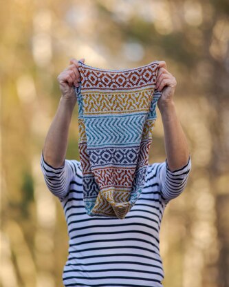 This colorwork cowl features repetitive colorwork patterns and is a perfect project to use some leftovers from your stash. The cowl is shaped as a Möbius strip, a geometric shape that has only one side.