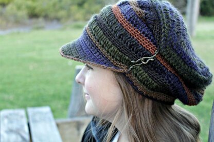 This is an unusual hat that uses the different weights of yarn to give texture to the body of the hat. It is steampunk style and finished with toggles on the sides. My testers have come up with all sorts of unusual fasteners so take a look :)