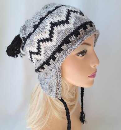 Knit in the round in stranded colorwork. I-cord finish, braided pigtails and tassel. Photo and video link tutorials.