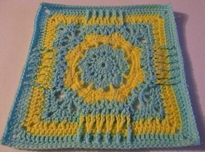 The name came from the colors I used, It just looked like spring time shades. This pattern is actually a companion of a full afghan. I had this tested first as a sneak peek. This one was hatched while working on the afghan and realizing I could do the corners in different ways. I started experimenting and discovered this could be a companion to the afghan, with its own personality. Assembled, the squares would make an interesting pattern from the front post sections being together.