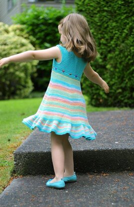 This dress was designed to flatter little toddler bodies. It is knitted completely in the round as are most of my projects.