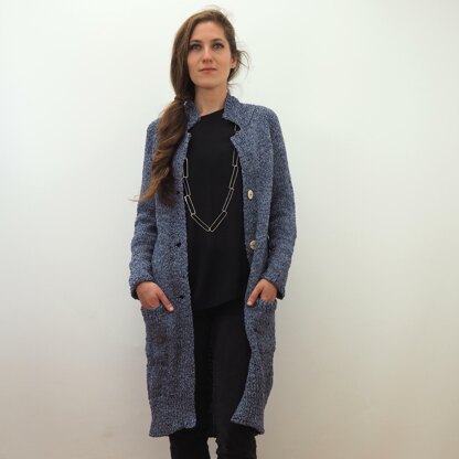 SHAI COAT is worked seamlessly from the top down. It provides a classic shape with jacket collar, raglan sleeves, patch pockets and 3 buttons in the front front panel.