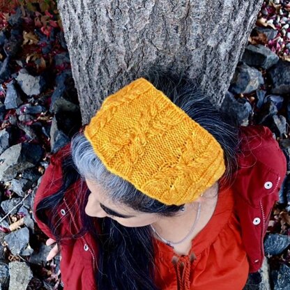 Shallal means waterfall in Arabic, and this cabled headband mimics the twisting and turning of water in a waterfall. Using simple short rows with no wrapping, which create a series of holes like yarn over lace to frame the central cables, this is a quick and easy project to make. It is thick and wide enough to be worn as an ear warmer, or strictly as a hair accessory.