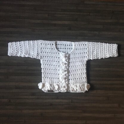 SHANNYN CROCHET BABY CARDIGAN CROCHET PATTERN PDF - A beautiful baby sweater in size 0 to 3 months. Made seamless all in one from bottom up so no sewing of side seams. Flowers are all crocheted in place and on front band they become the buttonholes.