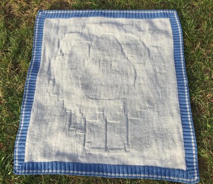 This blanket, decorated with a sheep in relief, will warm baby everywhere ! The body of blanket is knitted first, by following chart. Then stitches are picked up all around border, who is knitted in 2 pieces (to avoid too many stitches).