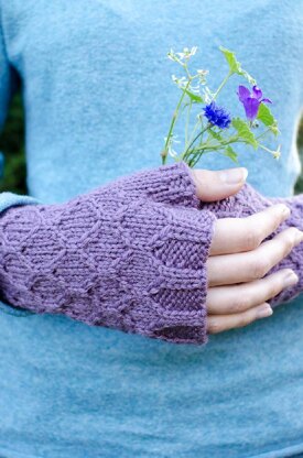 Using an intuitive and easy all-over cable pattern, the Shawgrove mitts are great at keeping chilly winds at bay. The cables grow organically from the ribbing before they wind across the hand imitating structures found in tree bark. Shawgrove are knitted in the round using one skein of worsted-weight yarn.
