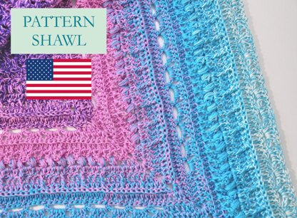 Pattern for making a crochet shawl, large size. The pattern involves the use of a shades yarn in cotton and microfiber and n°4 hook (Caribe Miss Tricot yarns), but you feel free to use any yarn you like, bearing in mind that if you use a thicker yarn, you will get a bigger shawl. Vice versa, if you use a thinner yarn, you will get a smaller. Same for number hook. THE PATTERN INCLUDES • 1 (one) PDF file. • 18 pages. • Full written pattern. • A stitch diagram (graph pattern). DIFFICULTY -> intermediate. LANGUAGE -> English US.