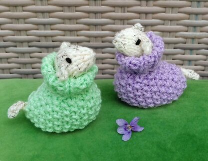 Each Sheep is cosily wearing a knitted rollneck jumper and snugly hugs a favourite chocolate egg - the jumper and body are the same (no extra jumper to knit).