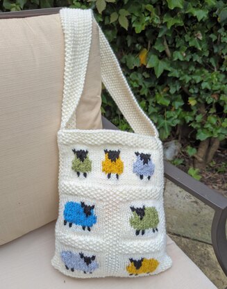 A knitting pattern for a unique and useful bag featuring Colourful Sheep.