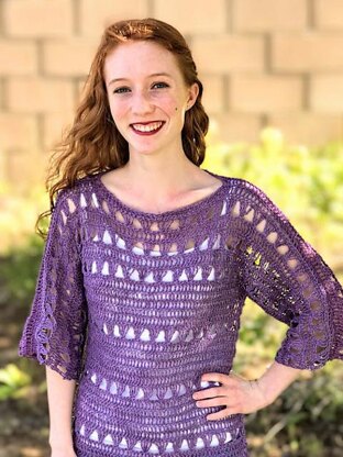Meet the Shelby Top—this summer crochet pattern would be the perfect addition to your wardrobe! The top features rows of simple double crochet alternating with beautiful triple crochet shells. It is perfect with jeans, or for more formal occasions as well.