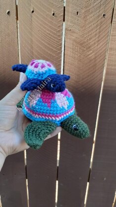 Meet Shellbie and her baby. Pattern includes 3 seperate patterns. Shellbie with a simple shell and options for larger size using blanket yarn, baby Shellbie, and flower pattern for Shellbies shell. It so much fun to customize her shell!