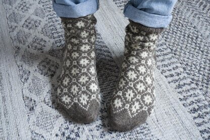 The Sherbrooke socks are worked in the round, from the cuff to the toe. The pattern includes a written description of the pattern and charts.