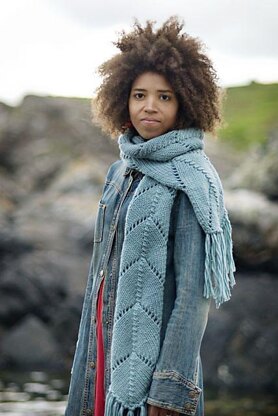 Simple pairings are often the best. In this scarf a well-known and easy Shetland Lace, Horseshoe Lace, is worked with a chunky yarn to produce a cosy piece of knitting to be wrapped as desired.