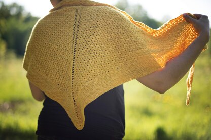 A delicate stitch flows into a simple textured border in this lightweight shawl. Ethereal mixed with the everyday makes this shawl a great choice for cool summer evenings on the porch and nights out on the town. This basic triangle shape is worked with a simple slipped stitch pattern, perfect for knitters adventuring into their first shawl.