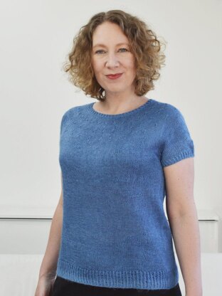 The gorgeous linen yarn in the tee pictured, I bought when visiting Sally in Shoreham-by-Sea some years ago. What better to use it for than a simple top-down tee with a circular yoke construction? The top is completely seamless, with subtle star stitch patterning in the yoke, and neat twisted rib edgings. Worked in a 100% linen yarn, this top is a dream to wear in warm weather. Moreover, it also works great as a layering piece!