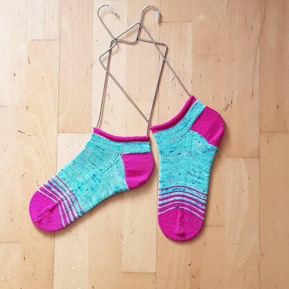 These socks came about because I wanted some cute, quick socks to knit for myself. This then lead to me knitting versions to give to my whole family. It was good practice in knitting different sizes. By the time of this pattern release, I will have knitted 6 pairs. All different colour variations, and all different sizes. I use to be the person who suffered from second sock syndrome, but with this sock pattern - that never happened. I just want to keep knitting them. I’ve also found this to be a good pattern to use up some of that leftover sock yarn you have from other projects.