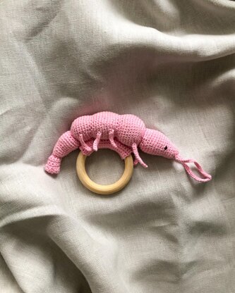 Shrimp are delightful small creatures that glide through the ocean with their wiggly legs and antennas. With this pattern you can bring a smile to a baby’s face, when you try to mimic the shrimp swimming through the ocean.
