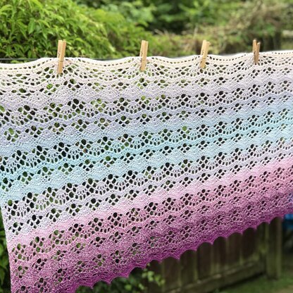 Side Waves is a rectangle shawl worked length-ways using a glorious lace pattern with a gentle wave.