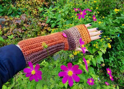 Whether worn indoors or outdoors, these fingerless arm warmers blend functionality with handmade charm.