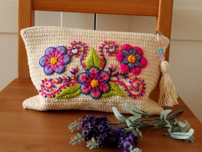 Pattern InfoCreate this beautiful flower bag and enjoy an introduction to Peruvian Andean embroidery, exploring the art and rich heritage of hand stitching from the Andes. This tutorial carefully explains with picture tutorials, the unique stitches and motifs often used in Ayacucho embroidery, so will be easy and you will learn each embroidery stitch, this pattern also include how to linen and attach the zipper.