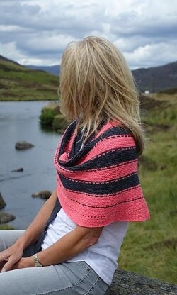 'Silent Movie' is a fun bi-color shawl perfect for every day use. It is knit on bias in a simple garter stitch with a touch of slip stitches and eyelets.
