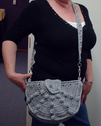 This stylish handbag features a detachable strap with a silver chain woven through it for a striking accent. Please note: If making lining, you will need: Grey lining material, 1 yard; Grey sewing thread; Fusible interfacing, ¾ yard; Straight pins;