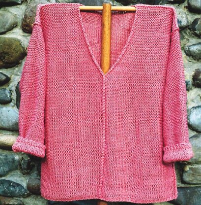 This super-comfy (and super-easy!) shirt is knit in reverse stockinette stitch. The seams are on the outside for detail. The Silverlake Shirt can be casual or dressy depending on your choice of yarn. Pattern may be knit in worsted or chunky weight yarn.