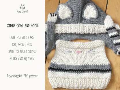 Create the cutest cozy cat look with the Simba kitten hood and cowl knitting pattern! This adorable set features a whimsical cat hood with pointed ears and a playful paw-tail ribbon, making it the perfect handmade winter accessory for little animal lovers and stylish grown-ups alike.