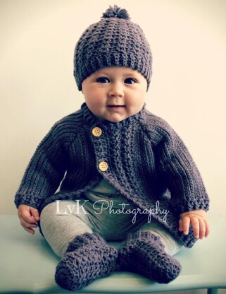 This adorable baby cardigan looks knit, but is completely crocheted! Stitches used include - ch, sl st, sc, bpsc, hdc, fphdc, bphdc It is ideal for a boy or girl. Features a cabled, side-fastening front and ribbed body.