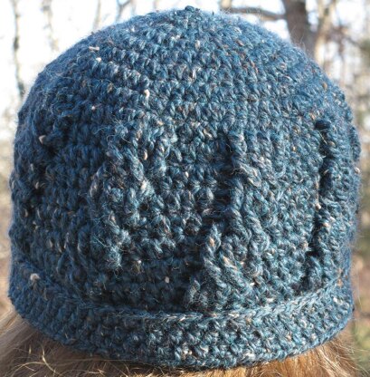 Simple beanie with textured cables, worked in the round.