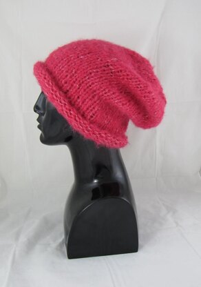 This is my Simple Superfast Super Furry Slouch hat knitting pattern. This hat really does take less than 2 hours to knit and make up because its knitted with super chunky yarn (or 2 balls of chunky thickness together) on 8 mm needles which is 4 times faster than normal knitting. The knitting pattern provides full instructions for 4 sizes XS (baby), S (child), M (woman) and L (man).