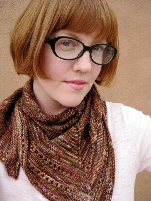 A handy small traveling project, it's also good for beginners who want to try a shaped shawl and eyelets without a lot of complicated patterning.