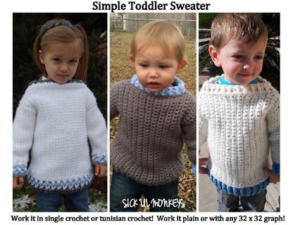 This is a simple Toddler sweater that works up in about a day. Choose any of my Sack Beanie graphs, choose on of the 3 included graphs, or create your own on the provided blank graph.