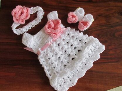 Cute handmade baby dress headband and shoes : white with light pink rose detail, pink satin ribbon, matching headband and shoes...It's perfect baby shower gift and the perfect choice also for first photo session, Christening or any other special evening.