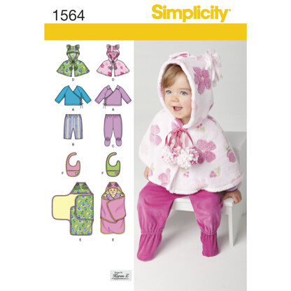 Simplicity Babies' Top, Trousers, Bib, and Blanket Wrap 1564 - Paper Pattern, Size A (XXS-XS-S-M-L)