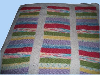 This blanket is a great stash-buster! It can be knit using any weight yarn.