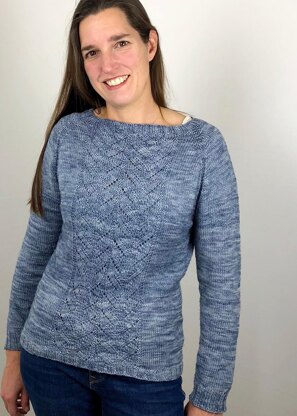 Simplicity in Lace is an easy yet, elegant top-down raglan pullover that only requires basic knitting skills. If you are a beginner knitter, you shouldn't shy away from attempting this project. Only two basic lace knitting stitches are required: purl two together (p2tog) and yarn over (yo).