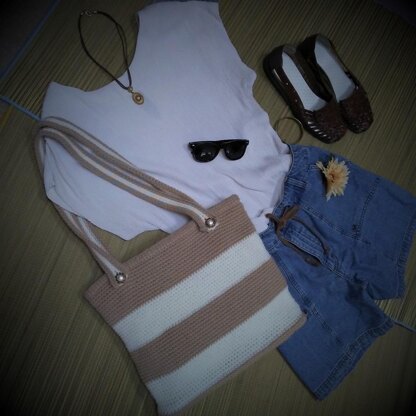 Details include how to customize it, how to line it, if desired, how to get the flat-bottom look and how to sew a zipper in the cosmetic pouch. The smaller version features a decorative closure flap and has a crossbody style with just 1 longer strap. The strap or handles attach to a button so they can easily be changed. Try different lengths or colors, with or without the middle stripe.