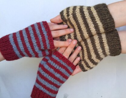 Stripes are cool and never fail me! I wanted to create a quick simple knit for a pair of mitts that almost anyone would enjoy and I hope you do, too. It is perfect for yourself or gifts. A great beginner pattern, practice with dpns, or a super fast knit for an advanced knitter needing to clear their lace or cable palette!