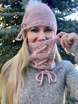 The Sincerely Amanda Hat & Cowl is an adorable pattern that features the lacing similar to the Sincerely Amanda Top. It includes a quick tutorial for adding the optional grommets, and the lacing is functional in scrunching the hat and cowl for some ruching.