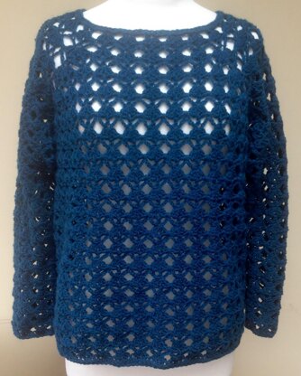 This sweater is worked from the top-down so you can try it on as you go. There are extra rows added to the back to provide back neck shaping.