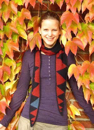 The scarf is worked in garter stitch and uses the modular knitting technique; for each triangle the stitches of the previous are picked up. No sewing involved!