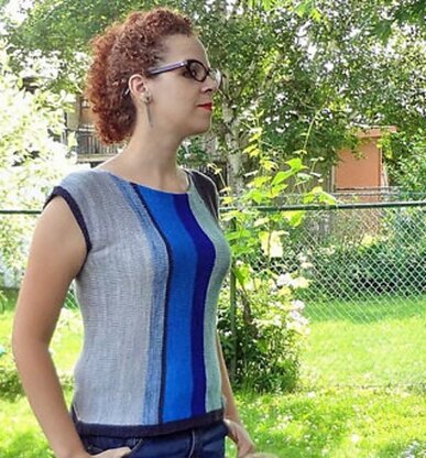 **Skills required:**Decreasing Increasing Casting on at the end of a row Picking up stitches Seaming Provisional cast on/grafting (optional) (top is knit all in one piece and can either be seamed under one arm or grafted - your preference)