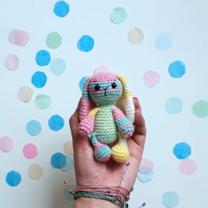 Arms, legs and ears are worked first and then are joined to the body while you crochet the body and head. The bunny is 4 inches tall (from feet to head). Take into consideration that size depends on yarn weight and your own tension, the size can vary.