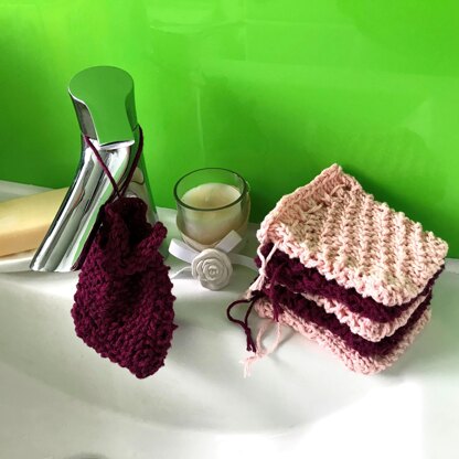 Knit yourself a soft, cotton bag to hold your soap, with a variety of easy to intermediate patterns for texture and ‘scrubability’.