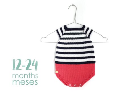 This knitted romper pattern is one of those basic patterns that can be used to make a Sailor Baby Romper, combine different colors, add ruffles, use the yoke to make a top for a dress or only the bottom to make a diaper cover, the possibilities are endless!