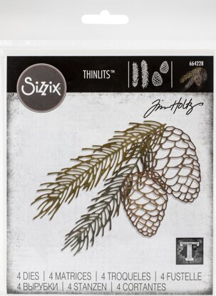 Thinlit dies offer a variety of affordable solo options or multi die options. Thinlits are easy to use and are compact and portable. Compatible with most die-cutting machines (not included). This package contains four dies measuring between 1.375x1.875 inches and 2.5x4 inches. Design: Pine Branch. Designer: Tim Holtz. Imported.